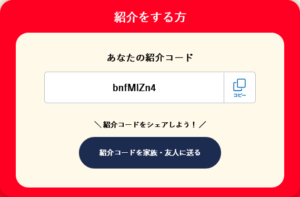 特典: 紹介1名につき500円分、紹介した人と受けた人の両方が特典を受け取れます。