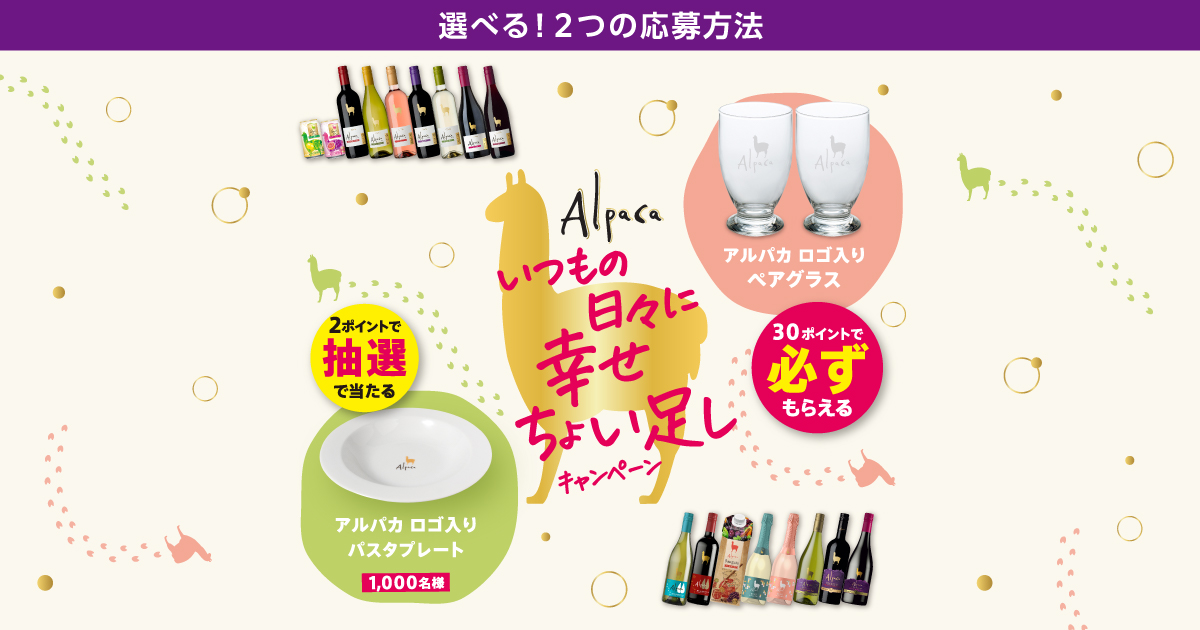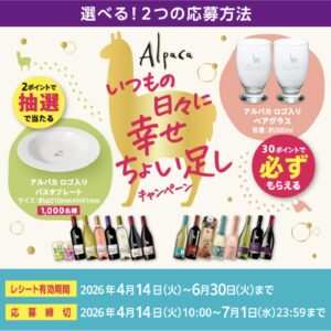 <抽選で当たるコース>アルパカ ロゴ入りパスタプレート(1,000名様)に応募できます。