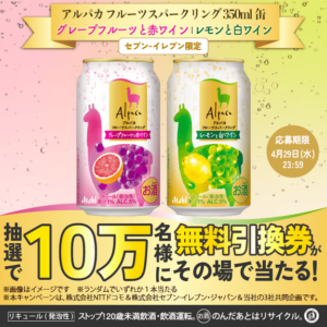 アルパカ フルーツスパークリング 350ml 10万名 〜4/29 dポイント/d払いアプリ セブンイレブン限定