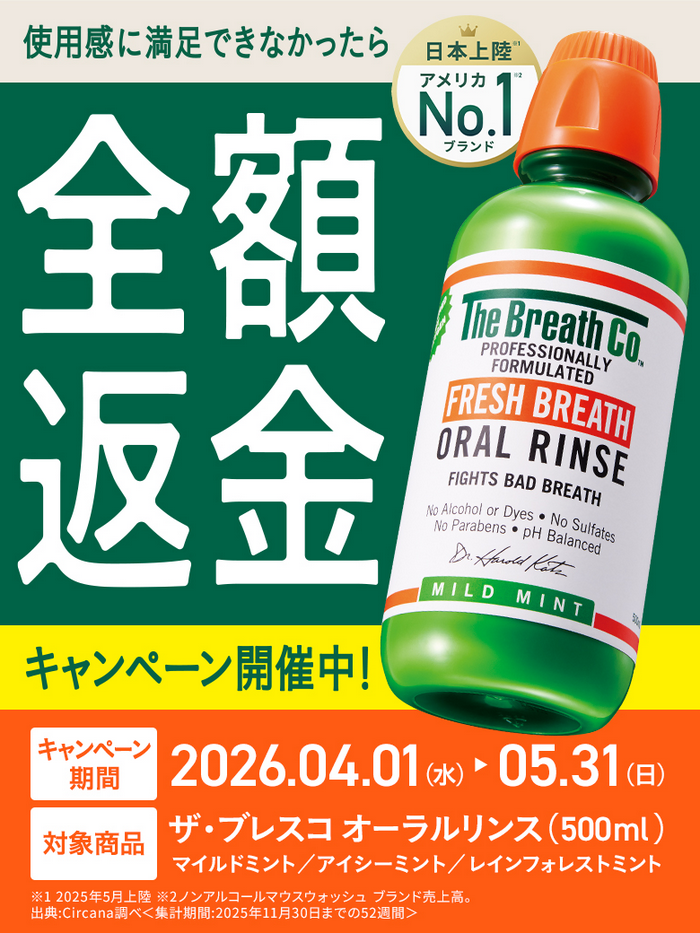 ザ・ブレスコ オーラルリンス500mlを購入し、満足できなければ全額返金キャンペーンを実施中です。