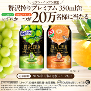 アサヒ 贅沢搾りプレミアム マスカット/みかんテイスト 20万名 ~5/6 dポイント/d払いアプリ セブンイレブン限定