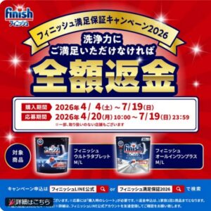 フィニッシュの対象商品を使用し、洗浄力に満足できなかった場合、税抜のご購入代金を「えらべるPay」でキャッシュバックされます。