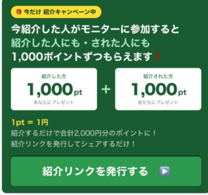 今なら友達紹介キャンペーンでお互いに1000ポイント=1000円相当もらえます。