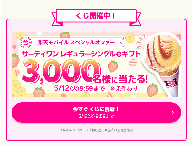 抽選で3,000名様にサーティワン レギュラーシングルeギフトがその場で抽選!