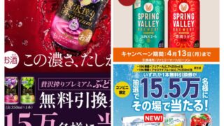 懸賞情報 毎日チャレンジ♪その場で当たる!スプリングバレー13万名、−196無糖15.5万名、贅沢搾り15万名