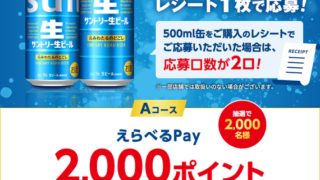 懸賞情報 新サントリー生ビール 沁みわたるのどごし体感キャンペーン!2000名にえらべるPay2000ポイントプレゼント!