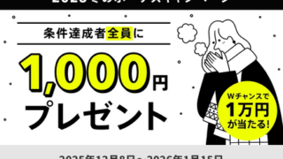 お役立ち 【みんなの銀行】もれなく1000円がもらえる! 2025冬のボーナスキャンペーンさらに抽選で100名に現金1万円が当たるダブルチャンス! みんなの銀行でもれなく1000円がもらえる!2025冬のボーナスキャンペーン「冬2025」設定したボックスを新規作成し、預金を10万円以上増やして3か月キープするだけで、現金1,000円をもれなくプレゼント!さらに50万円以上なら、抽選で1... 2025.12.08 お役立ちお得なアプリ貯蓄