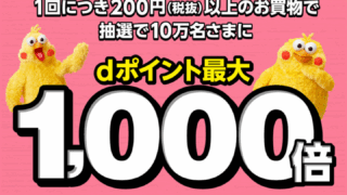 ローソンでdポイントカード提示&200円以上のお買い物で10万名にdポイント最大1000倍になるキャンペーンが始まりました。期間中エントリーの上、ローソン・ナチュラルローソン・ローソンストア100の対象店舗で、会計時にdポイントカードを提示...